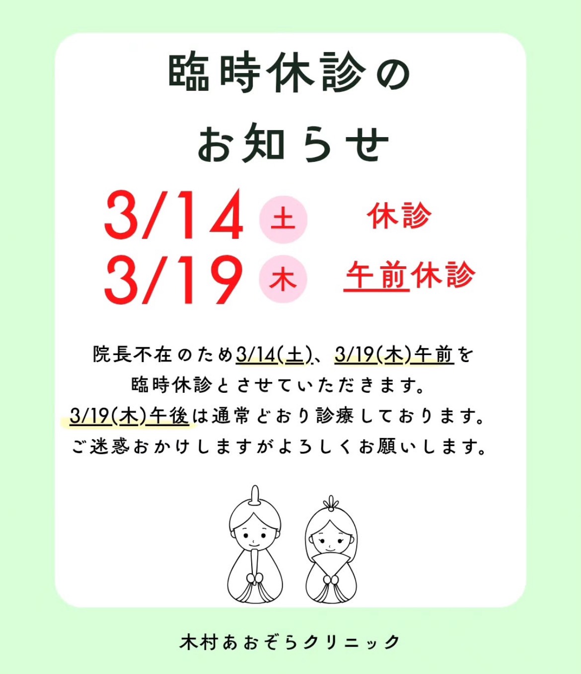 [休診日]水曜日午後/土曜日午後/日曜日/祝日