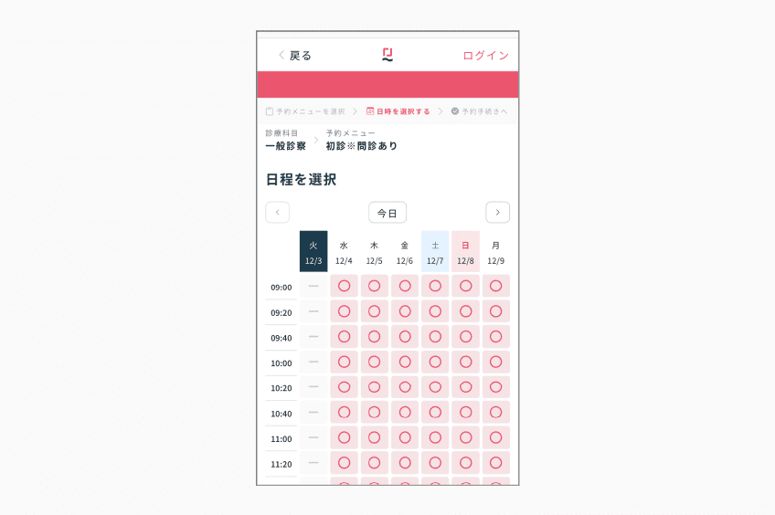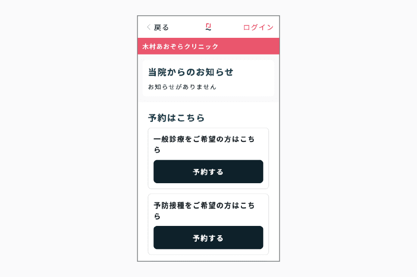 - 「一般診療」の他に「予防接種」「健康診断・人間ドック」のご予約枠もご用意しております。