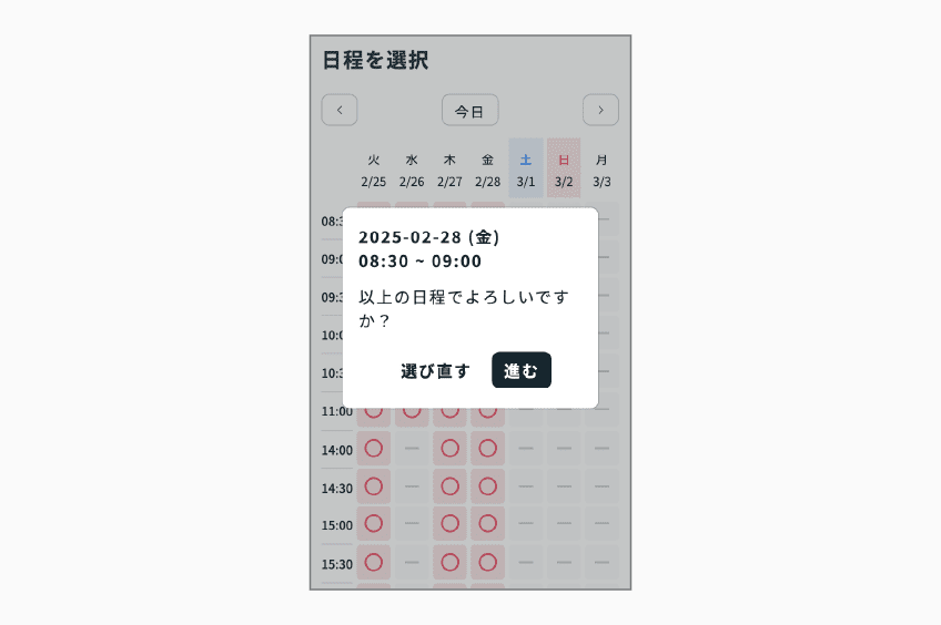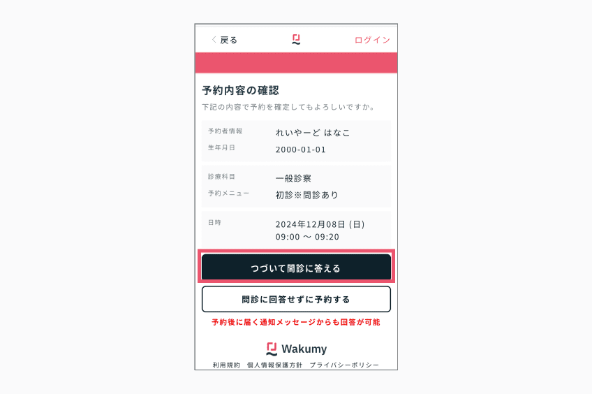 内容の確認を行い、つづいて問診の回答へ進みます。