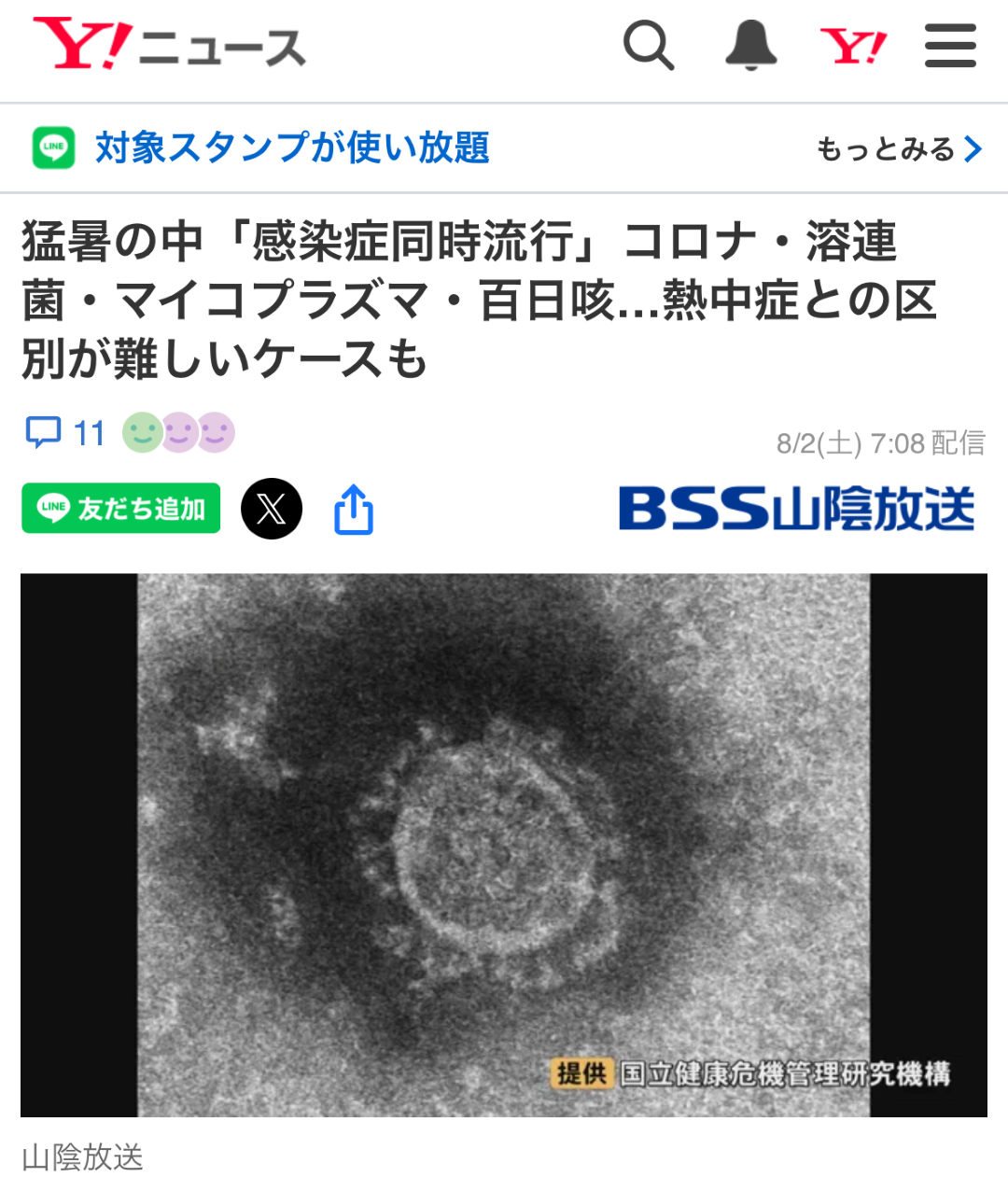 『猛暑の中「感染症同時流行」コロナ・溶連菌・マイコプラズマ・百日咳…熱中症との区別が難しいケースも』というテーマで取材を受けました!