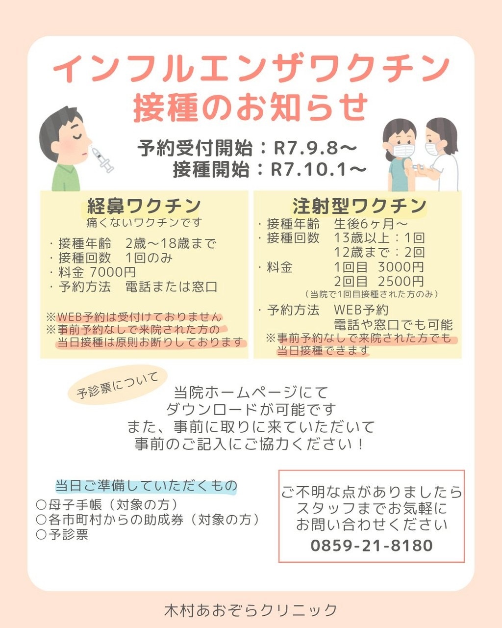 皮下注射も点鼻ワクチン(フルミスト)も接種可能です!