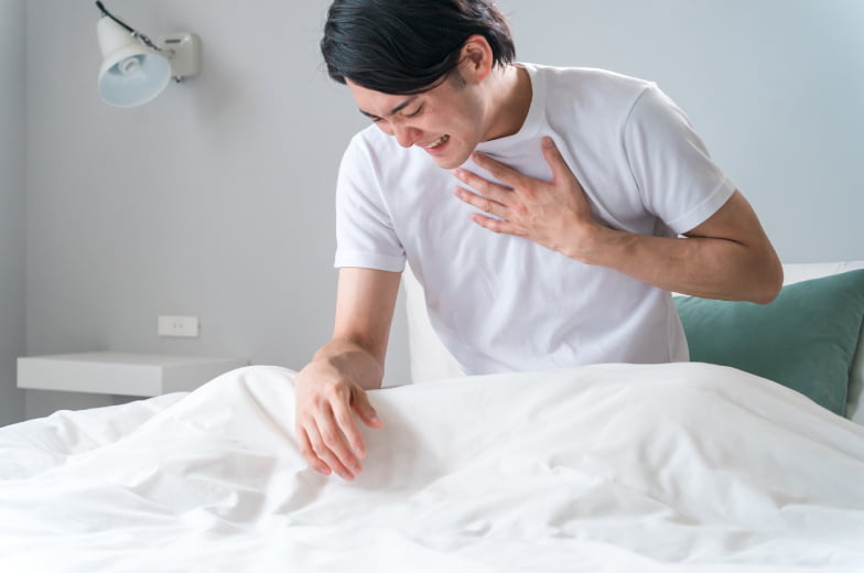 下記の症状が1つでもあらわれたら、アナフィラキシーショックを疑います。できるだけ早期にエピペンを注射し、救急車を呼んでください。